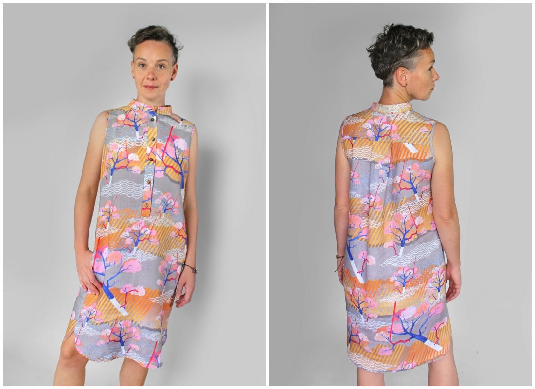 Krój przywodzi na myśl minimalistyczny, japoński styl i właśnie dlatego ta sukienka aż prosiła się, żeby ją uszyć we wzór sakaido.