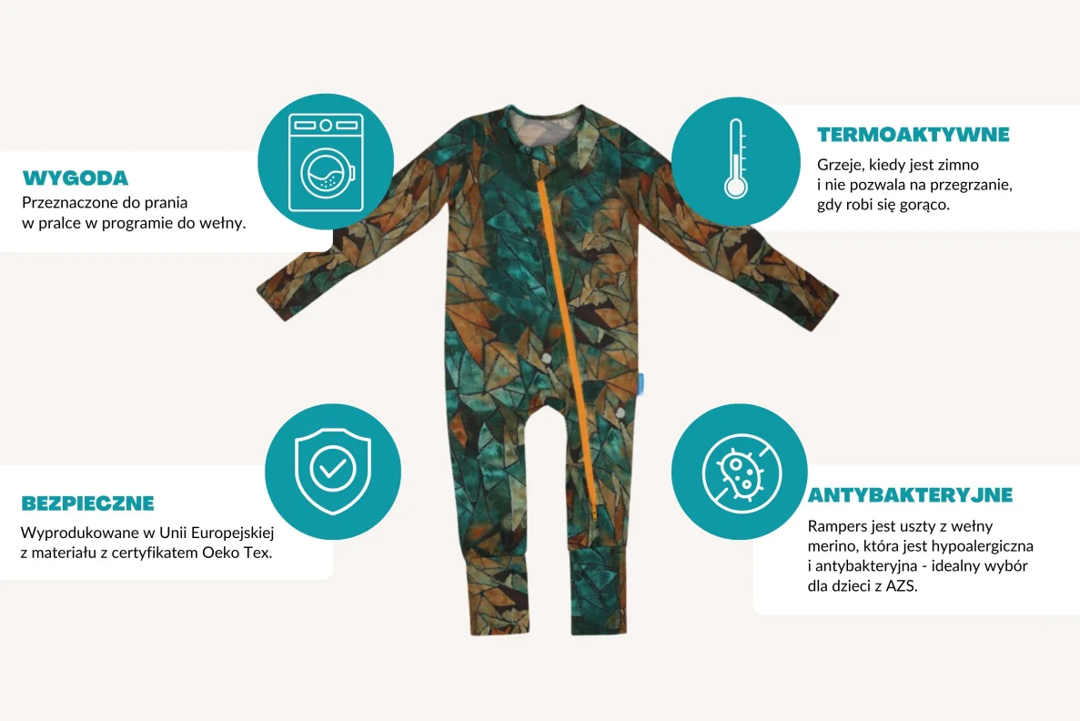 Najlepiej wytłumaczyć to na przykładzie. Wyobraź sobie, że idziesz z dzieckiem zimą na spacer. Ubierasz je w koszulkę, bluzę i spodnie z wełny merino. Na to zimowy kombinezon i idziecie szaleć w śniegu. Dziecku jest ciepło, bo wełna merino je ogrzewa. Po zabawie przypominasz sobie, że musisz wejść do marketu. Wchodzisz z dzieckiem. Pewnie będzie mu tam za ciepło, prawda? Po wyjściu okazuje się, że dziecko się spociło. To jednak nie problem, bo wełna merino pozostaje ciepła nawet wtedy, kiedy jest mokra i szybko schnie. Dzięki temu dziecko nie będzie miało poczucia, że ma na sobie mokre ubranie. I nie przeziębi się po wyjściu ze sklepu na mróz.