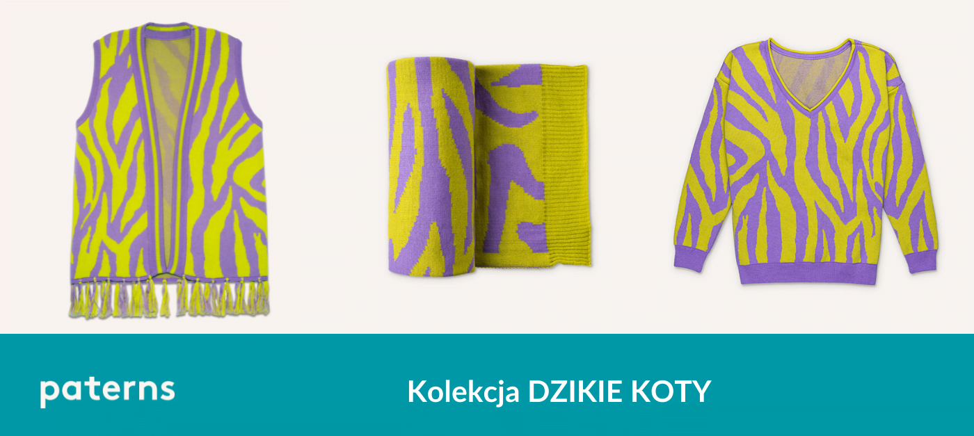 Pomysł na kolekcję DZIKIE KOTY powstał w maju 2020 roku, po pierwszej fali pandemii i lockdownie. Kolekcja ta miała nam rozweselić jesień i dodać otuchy. Nie udało nam się jednak jej wyprodukować w 2020, bo nie nadążaliśmy z produkcją fioletowych czapek, które kupowaliście z prędkością światła. Dlatego wełnę na dzikie koty, musieliśmy przeznaczyć właśnie na fioletowe czapki.