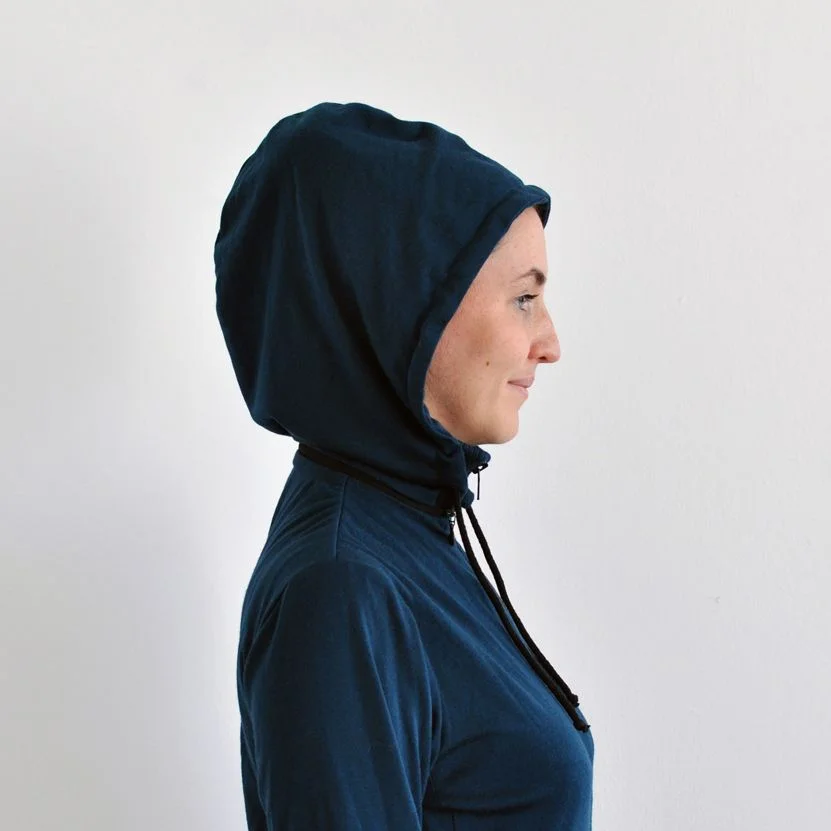 W niektórych bluzach, które mają kaptur, przeszkadza nam to, że mają odsłoniętą szyję i kiedy jest chłodno, to ją przewiewa. Da się to obejść zakładając chustę tubę z wełny merino. Jednak tworząc idealną bluzę z wełny merynosów stwierdziliśmy, że poza kapturem bluza musi mieć wysoką stójkę. Taką, która dobrze okala szyję, ale nie uciska i chroni przed chłodem. Kiedy jest cieplej, po prostu rozpinacie bluzę i odsłaniacie szyję. Uniwersalność przede wszystkim.