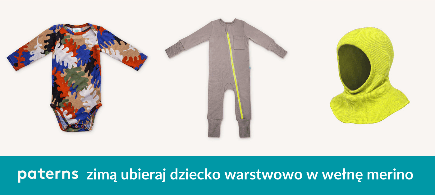 Pierwsza warstwa to ta, która jest najbliżej ciała. Powinna dobrze przylegać. Nawet jeśli dziecku będzie zbyt ciepło, to wełna merino odprowadzi pot z dala od skóry i nie pozwoli na przegrzanie niemowlaka.