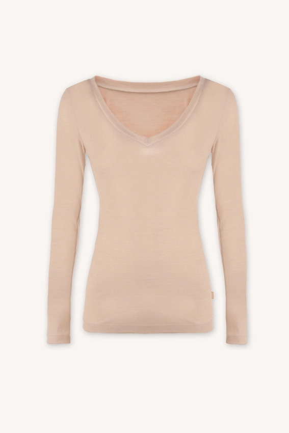 Podkoszulka z wełny merino z długim rękawem i dekoltem V cielista