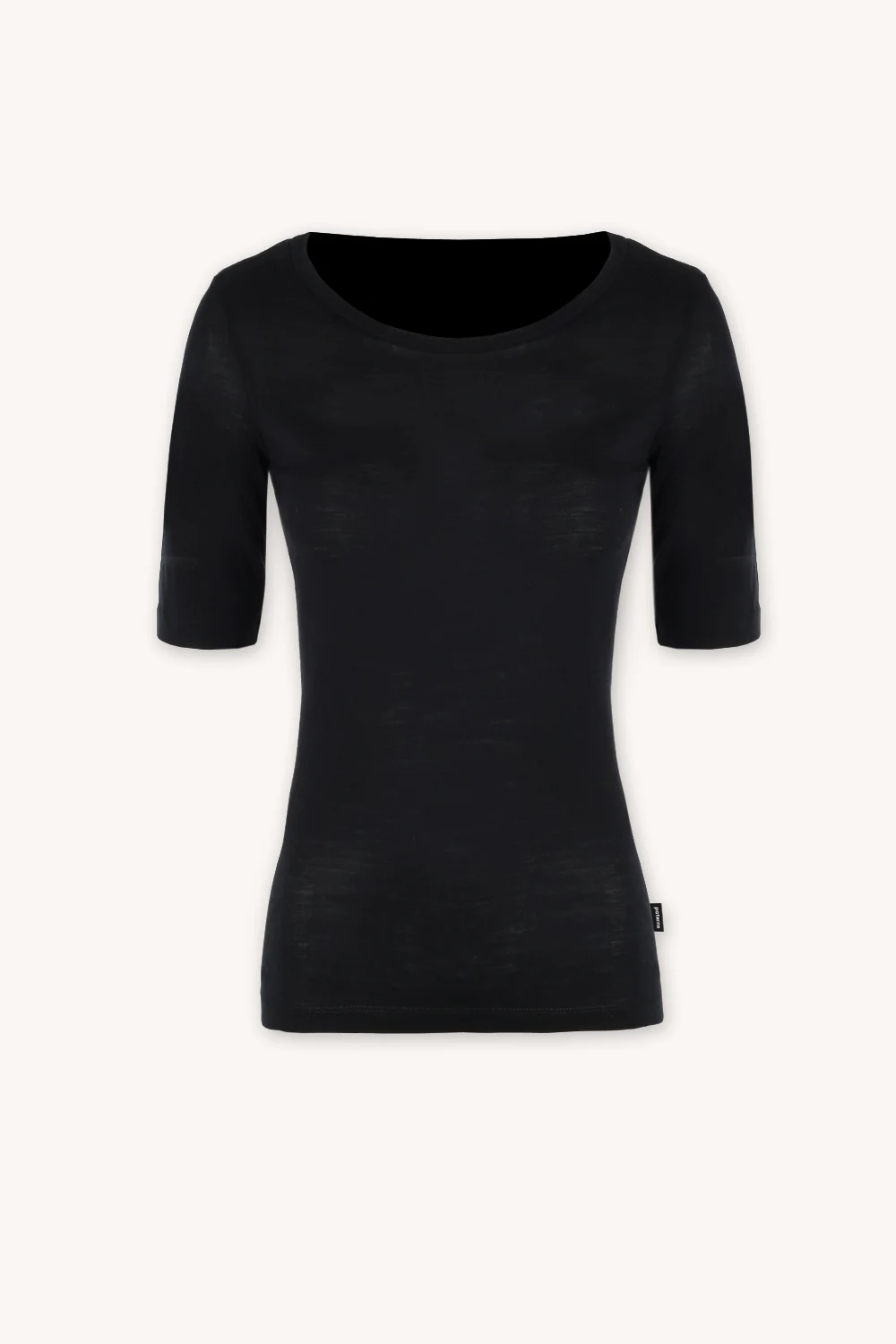 Podkoszulka z wełny merino z krótkim rękawem i dekoltem U czarna