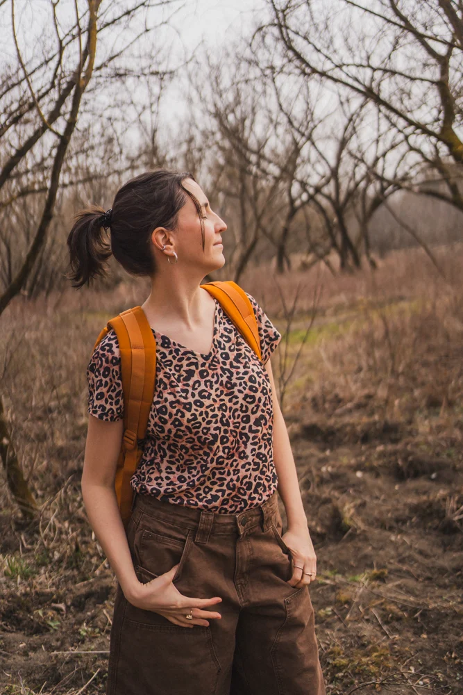 Koszulka z wełny merino z rękawem 3/4 w panterkę
