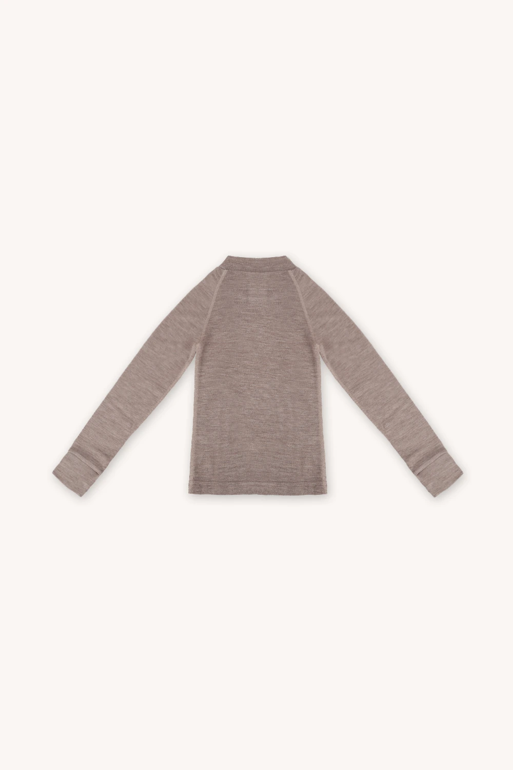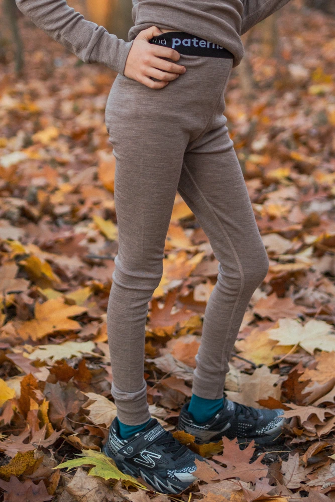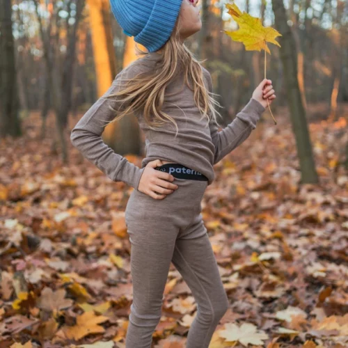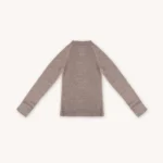 Ciepła, termoaktywn góra bielizny termoaktywnej dziecięcej z wełny merino, w kolorze beżowym. Góra bielizny 100% z wełny merino sprawdzi się doskonale podczas jesiennych i zimowych aktywności na świeżym powietrzu.