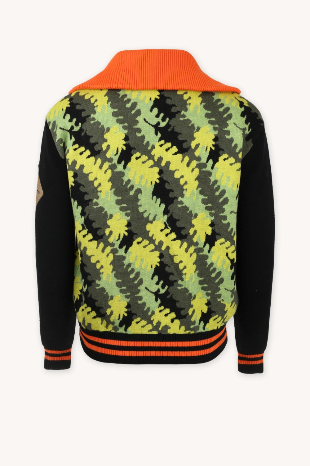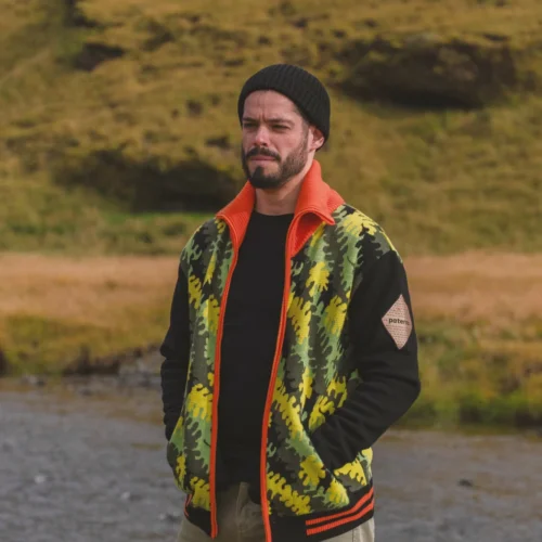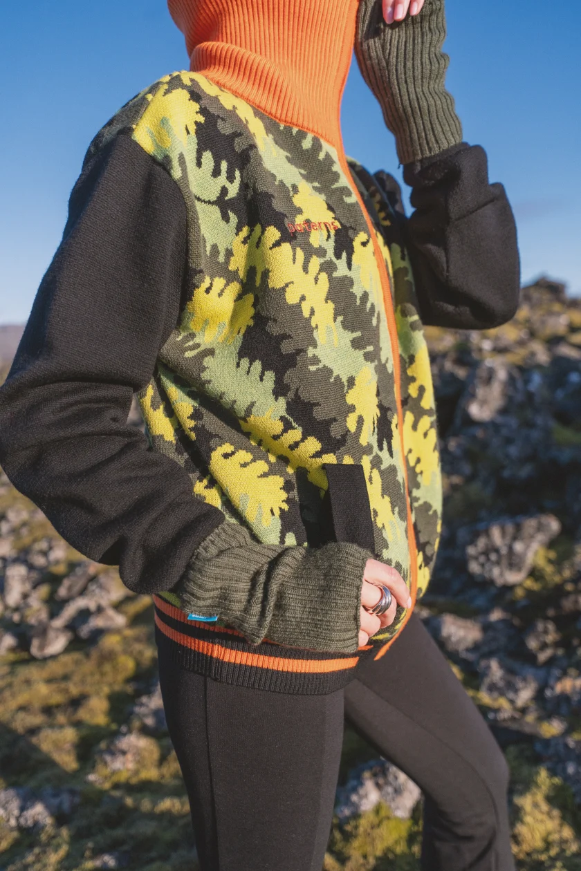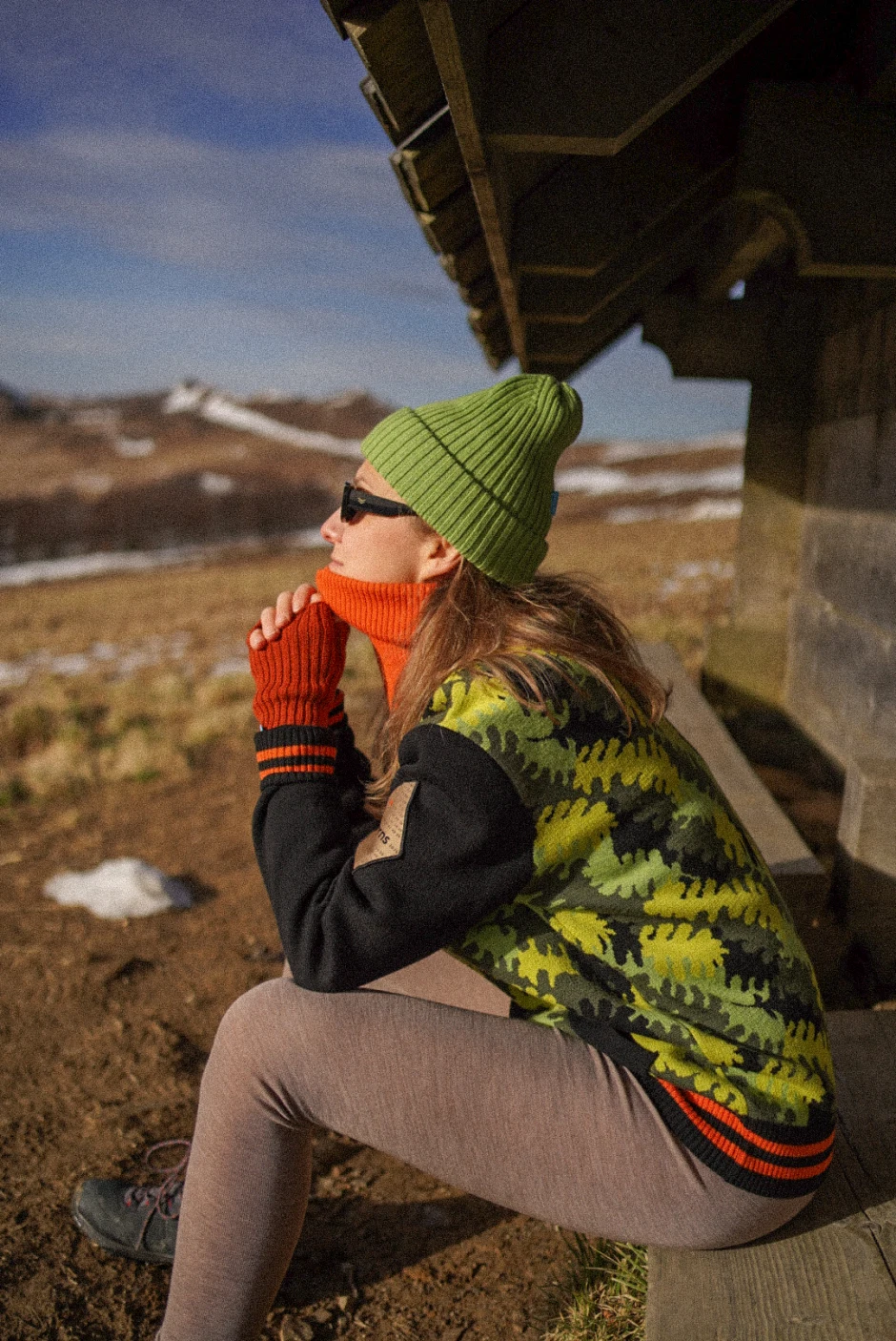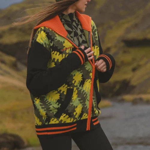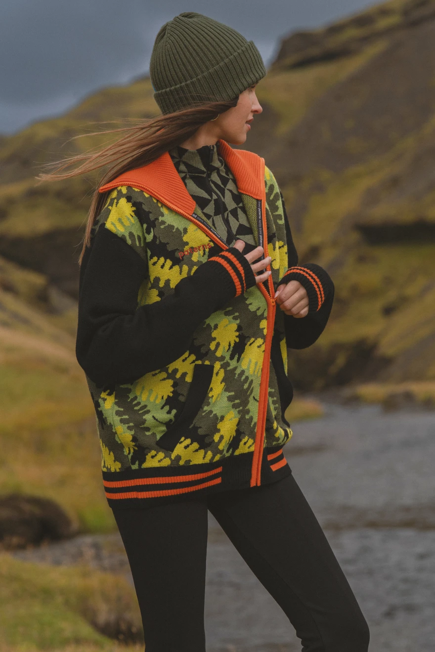 Ta bomberka została wykonana z 100% wełny merino techniką żakardu. Żakardowy splot tworzy niepowtarzalny wzór liści dębu w intensywnych, energetyzujących barwach.