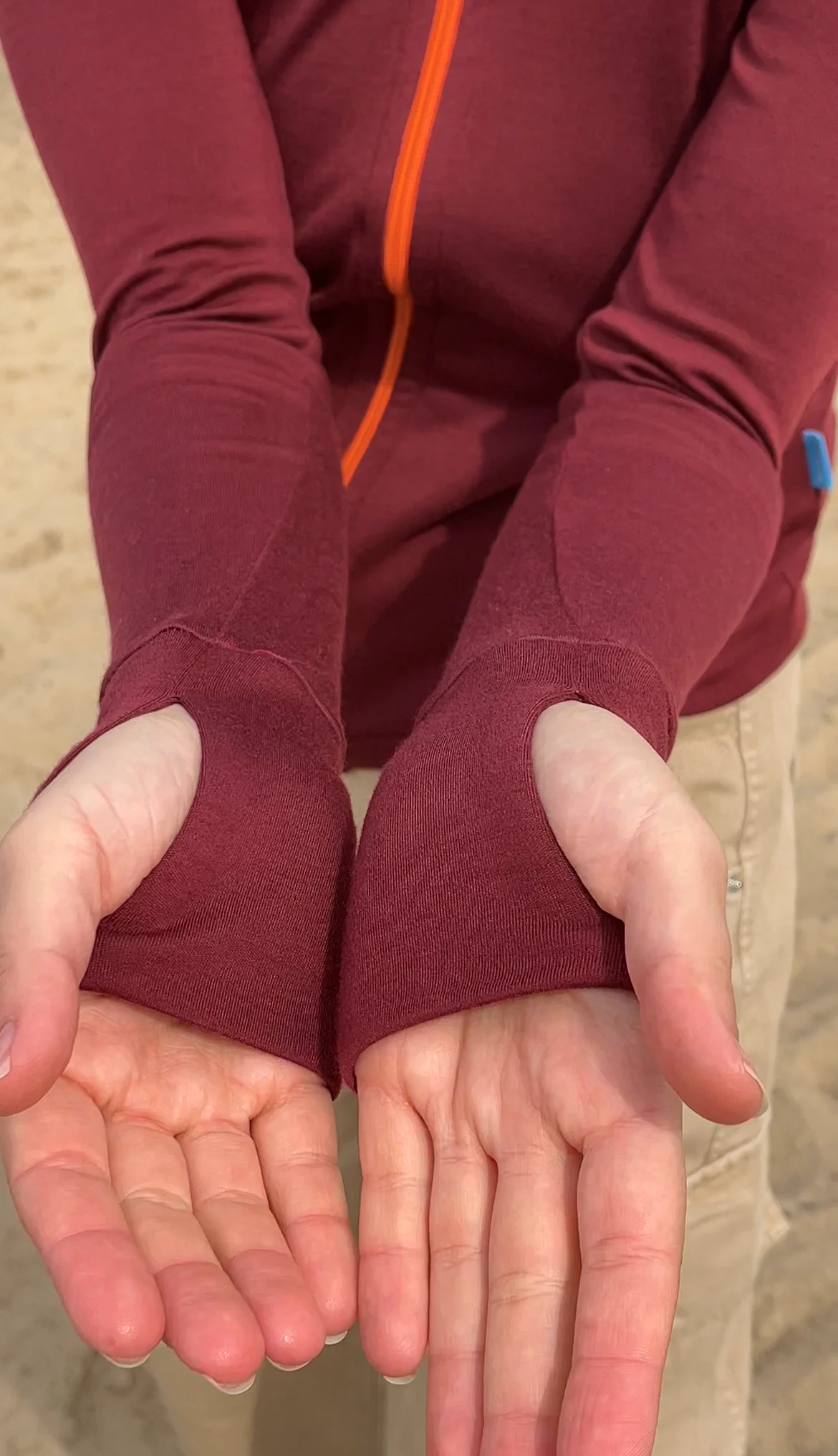 - Otwory na kciuki – Zapewniają dodatkowe ciepło dłoniom i stabilizują rękawy.