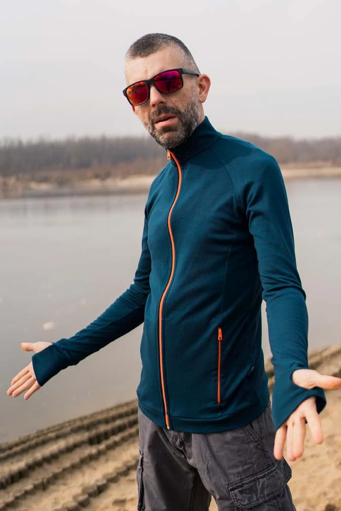 Do bluzy idealnie pasują spodnie dresowe wykonane z tego samego materiału 100% merino. Pod spód polecamy założyć koszulkę z cienkiej wełny o gramaturze 135 gr.