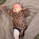 Cienkie body dla niemowląt w panterkę wykonane w 100% z wełny merino.