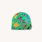 Cienka C=czapeczka niemowlęca z wełny merino we wzór narysowany przez dzieci.