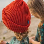 Dwukrotnie wywinięty mankiet czerwonej czapki z wełny merino powoduje, że uszy dziecka są chronione potrójną warstwą wełny merino, a więc jest naprawdę ciepło. Czapkę możesz też wywijać tylko raz.