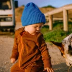 Dwukrotnie wywinięty mankiet niebieskiej czapki z wełny merino powoduje, że uszy dziecka są chronione potrójną warstwą wełny merino, a więc jest naprawdę ciepło. Czapkę możesz też wywijać tylko raz.