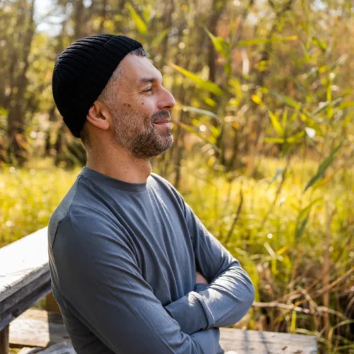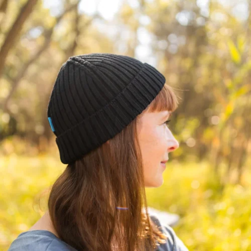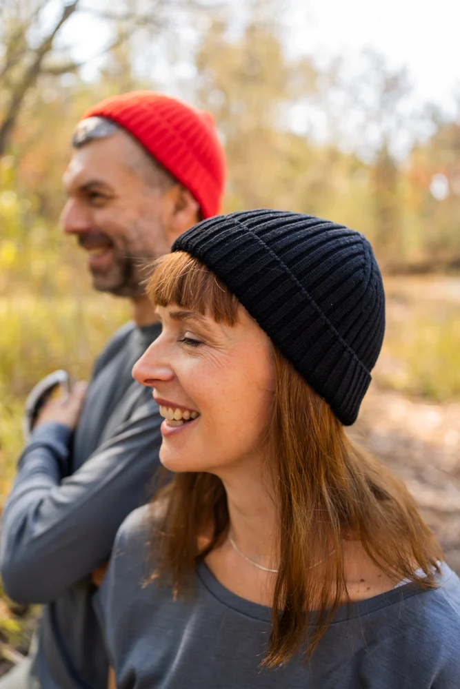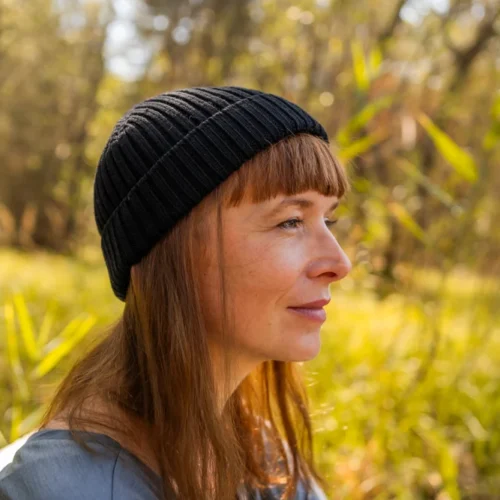 Wełna merynosów to jeden z najbardziej cenionych materiałów naturalnych na świecie. Jest niezwykle miękka, nie gryzie i doskonale sprawdza się w kontakcie ze skórą — nawet u osób o wrażliwej cerze. Działa termoaktywnie, co oznacza, że utrzymuje optymalną temperaturę głowy: grzeje w chłodne dni, ale jednocześnie nie przegrzewa, gdy zrobi się cieplej. Dodatkowo wełna merino jest odporna na pochłanianie zapachów i ma właściwości antybakteryjne.