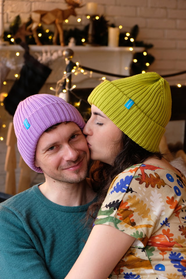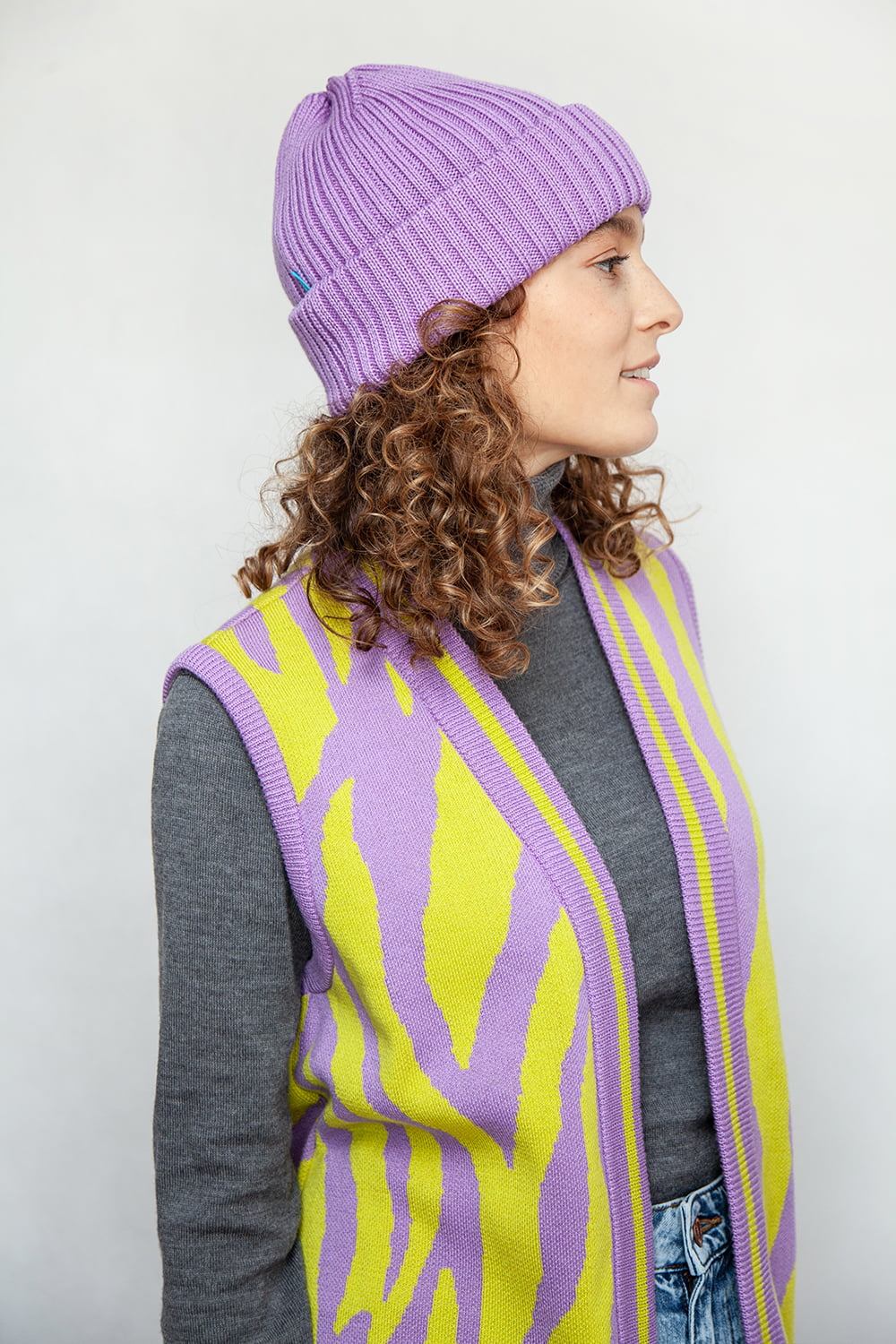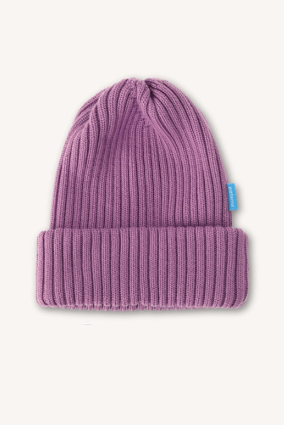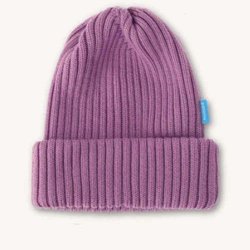 Liliowy kolor czapki z wełny merino rozświetli najbardziej ponury dzień. W zależności od światła wydaje się cieplejszy lub chłodniejszy. Świetnie komponuje się z jasną szarością, bielą, czernią, granatem i musztardowym. Genialnie wygląda z bordowymi ustami.