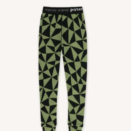 Legginsy termoaktywne z wełny merino 100% dla dzieci w oliwkowe trójkąty