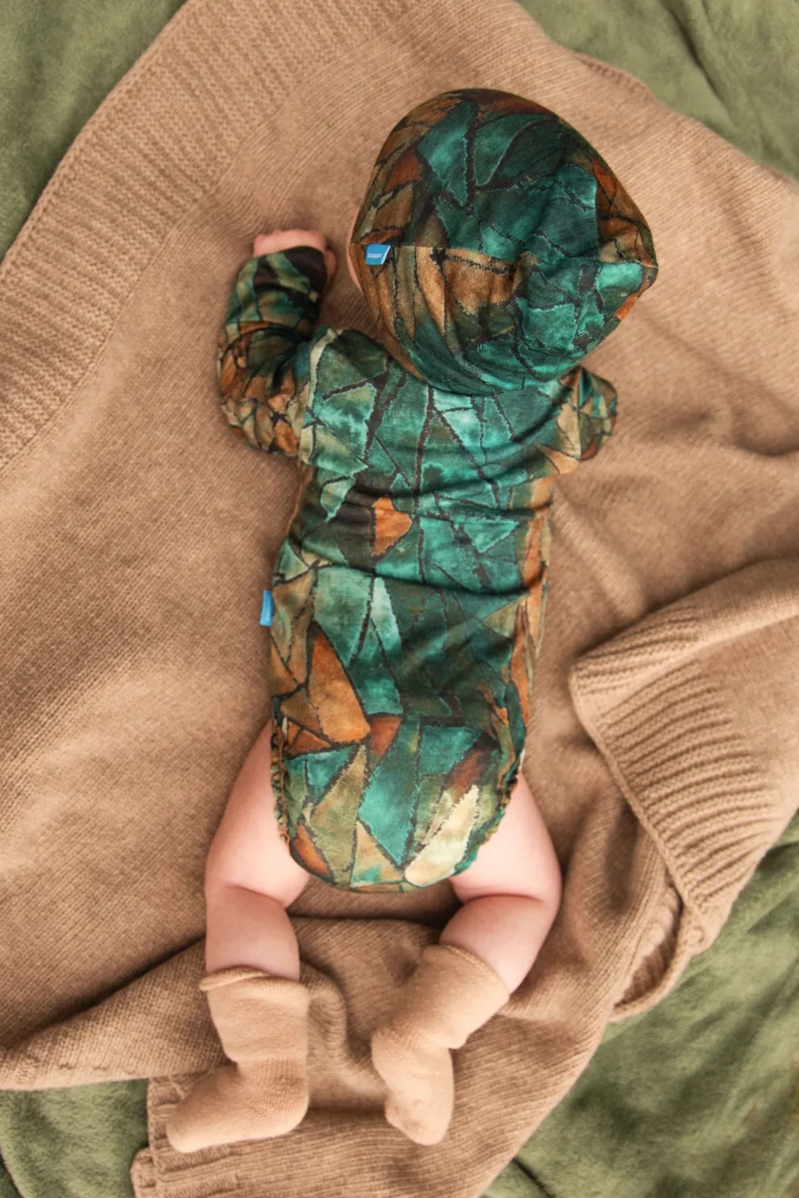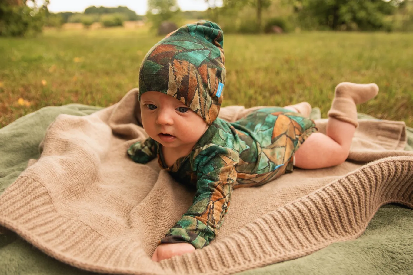 • Kocyk z wełny merynosów jest dziany, a dzięki temu naprawdę elastyczny, dlatego nie krępuje ruchów dziecka. Jednocześnie, przez to, że rozciąga się mocno, możesz nim szczelnie owinąć dziecko.