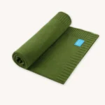 Kocyk z wełny merino 100% dla niemowlaka w zielonym kolorze. Wełna merino ma właściwości termoregulacyjne. To oznacza, że grzeje wtedy, kiedy jest zimno, ale też odprowadza wilgoć z dala od skóry, kiedy robi się cieplej.