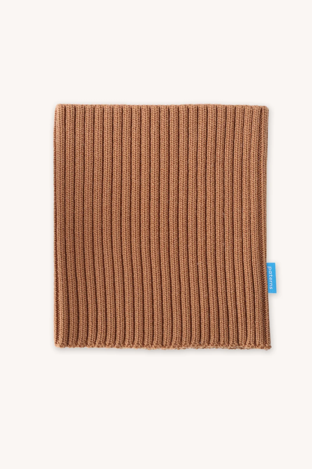 Karmelowy komin z wełny merino wykonany ściegiem ściągaczowym. Gruby, mięsisty komin z wełny merynosów zapewni Ci ciepło nawet podczas mrozów.