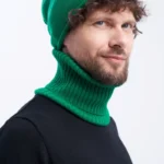 Szmaragdowy komin z wełny merino wykonany ściegiem ściągaczowym. Gruby, mięsisty komin z wełny merynosów zapewni Ci ciepło nawet podczas mrozów.