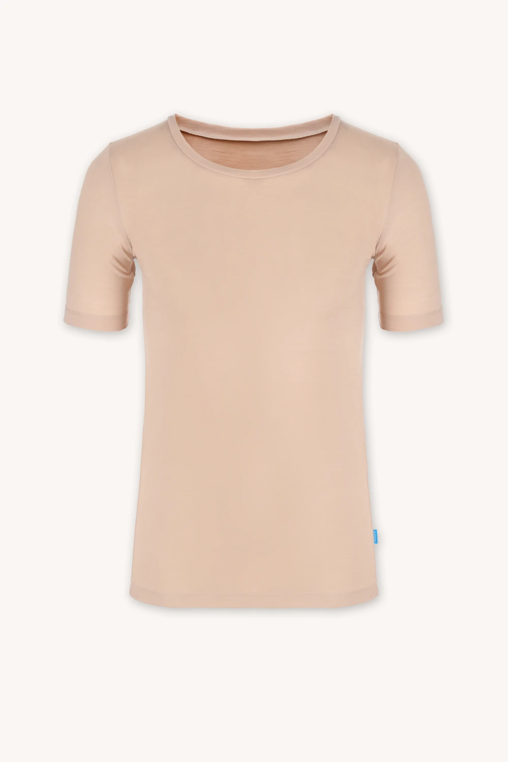 - Niewidoczność i uniwersalność: Dzięki cielistemu kolorowi i dekoltowi w kształcie litery U, koszulka dyskretnie znika pod większością jasnych koszul. Świetnie sprawdza się zarówno w sytuacjach formalnych, jak i casualowych.