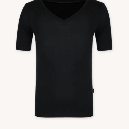 Dyskrecja pod ciemnymi ubraniami: Głęboka czerń oraz dekolt w kształcie litery V sprawiają, że koszulka pozostaje niewidoczna nawet pod granatowymi, grafitowymi czy czarnymi koszulami i swetrami. Idealne rozwiązanie dla tych, którzy stawiają na schludność i niewidoczność bielizny.