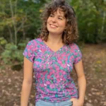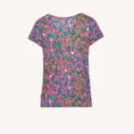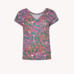 T-shirt damski w motylki z dekoltem V. Wykonany w 100% z miękkiej i cienkiej wełny merino.