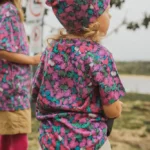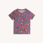 Kolorowy t-shirt z wełny merino we wzór w motylki dla dziecka.