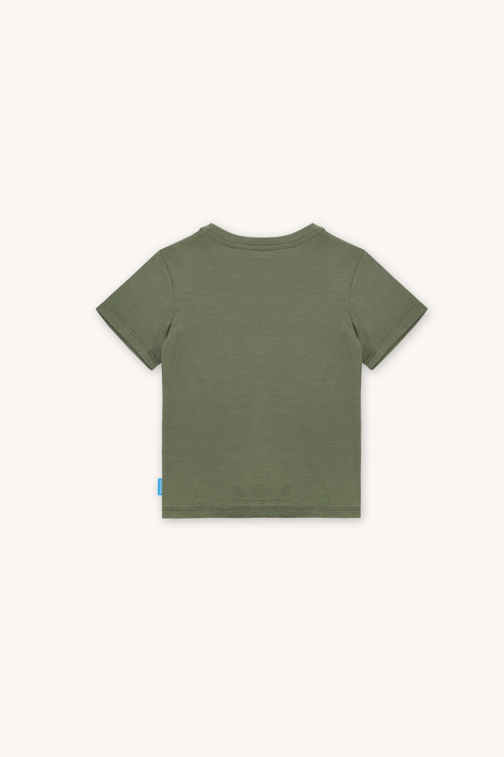 T-shirt z wełny merino dla dziecka w kolorze zgaszonej oliwki.