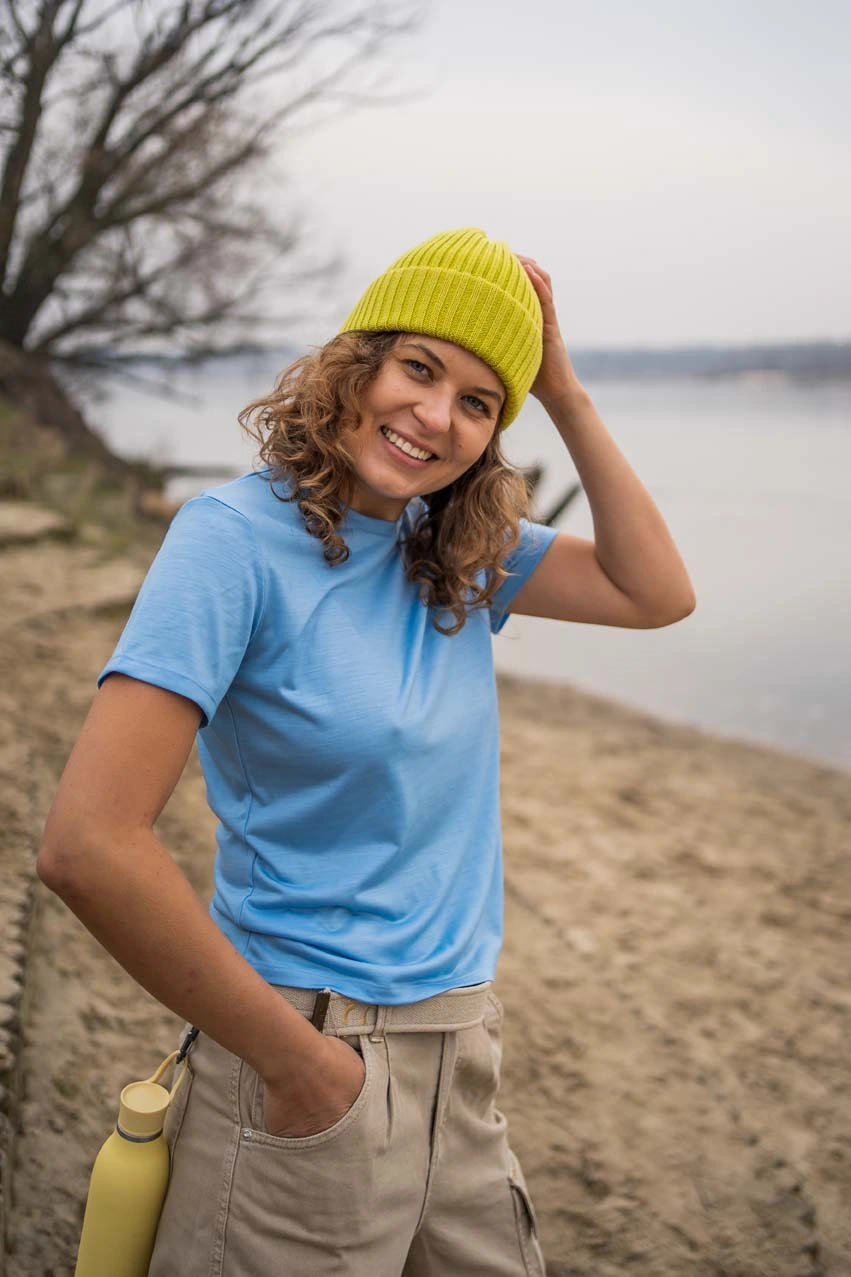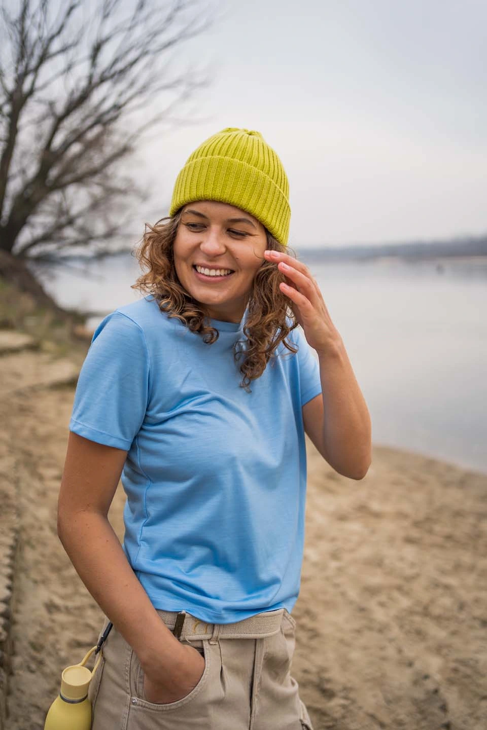 NIE TRZEBA CZĘSTO PRAĆ – wełna merynosów samooczyszcza się w kontakcie z tlenem. Jeśli więc chcesz odświeżyć niebieski t-shirt z wełny merino, wystarczy, że wywiesisz go na noc na balkon. Rano będzie gotowy do założenia.