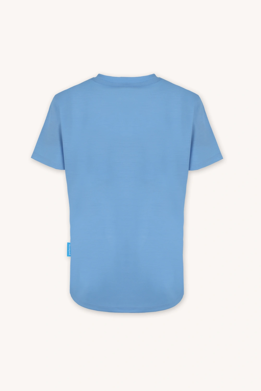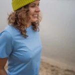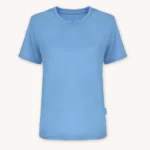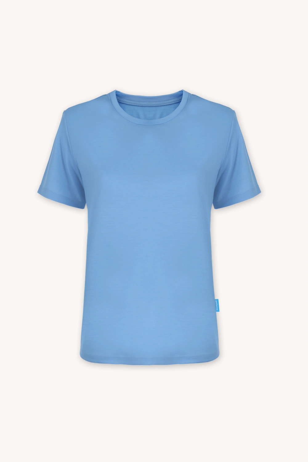T-shirt damski w kolorze niebieskim typu o-neck. Idealna koszulka do uprawiania sportu. Wykonany w 100% z miękkiej i cienkiej wełny merino.