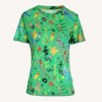 T-shirt damski we wzór stworzony przez dzieci typu o-neck. Idealna koszulka do uprawiania sportu. Wykonany w 100% z miękkiej i cienkiej wełny merino.