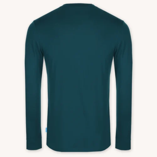 BAZA DO WSZYSTKIEGO – Longsleeve z wełny merino w kolorze petrol stanie się Twoim ulubionym ubraniem zarówno podczas aktywności fizycznej, jak i na co dzień. Całe szczęście, że nie trzeba go często prać – żeby go odświeżyć, wystarczy wywietrzyć przez noc. To kolejna magiczna cecha wełny merynosów, samooczyszcza się w kontakcie z tlenem.