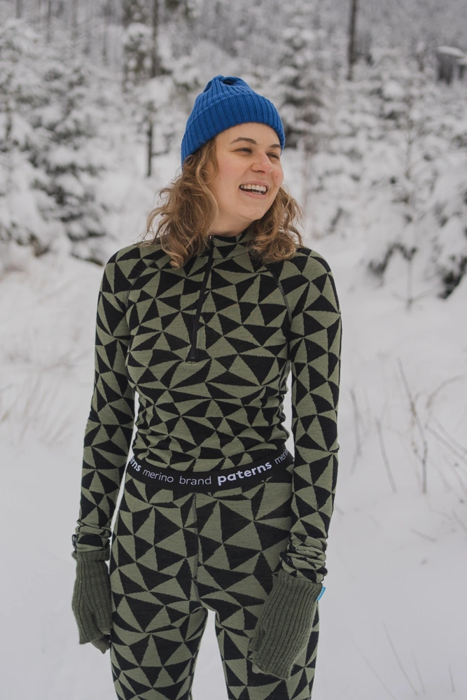 Podkoszulka z cienkiej wełny merino jest tak delikatna, że niemal stapia się ze skórą – nie gryzie, nie podrażnia i otula miękkim komfortem. Jej prześwitująca struktura to efekt naturalnej lekkości materiału, który pozwala skórze oddychać, reguluje temperaturę i zapewnia wygodę na co dzień.