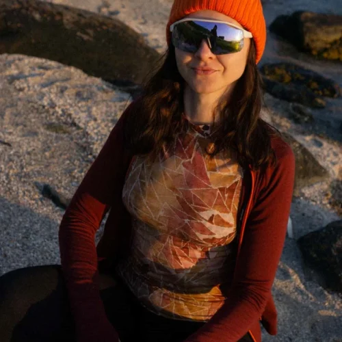 To nasz najbardziej dopasowany model. Posiada stójkę, która przylega do szyi, ale nie uciska. Idealny jako bielizna termiczna do uprawiania sportów o bardzo wysokiej intensywności. To w niej przeszliśmy szlak TMB (Tour du Mont Blanc) w 30 stopniowym upale, gdzie skutecznie chroniła skórę przed słońcem.