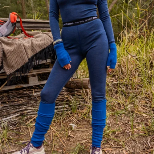 Ciepłe, termoaktywne legginsy damskie z wełny merino z wysokim stanem granatowe. Dół bielizny termicznej 100% z wełny merino sprawdzi się doskonale jesienią i zimą podczas uprawiania sportu na świeżym powietrzu.