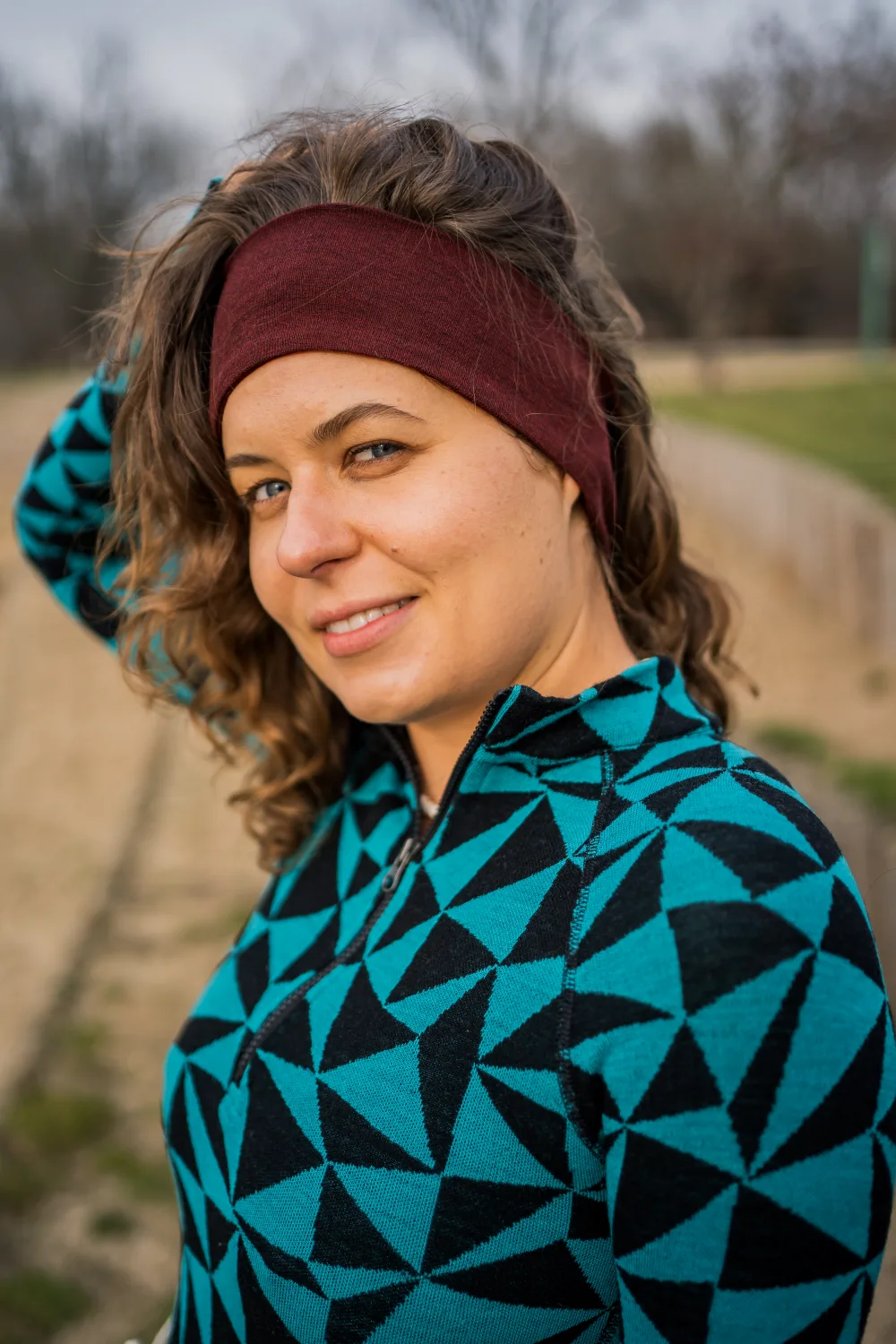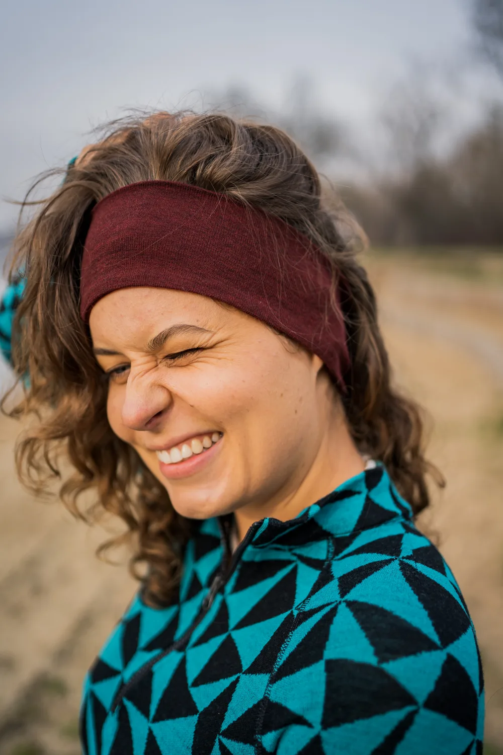 Średnio gruba, bordowa opaska szyta z podwójnej warstwy wełny merino o gramaturze 180 gr. To to doskonały element, który doskonale sprawdzi się podczas uprawiania sportu na świeżym powietrzu w chłodne dni. W szczególności przydatny dla biegaczy.