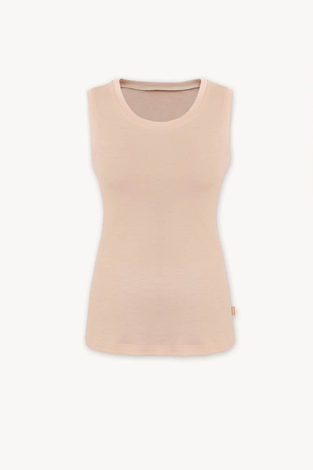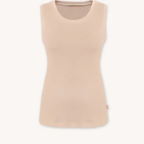 Szukasz cienkiej, niewidocznej i komfortowej warstwy pod jasne bluzki czy koszule? Cielisty top z wełny merino bez rękawów to minimalistyczna, lekka i oddychająca baza, idealna na cieplejsze dni lub jako niewidoczna warstwa pod dopasowaną odzież. Jego cielisty odcień doskonale wtapia się w skórę, nie odznaczając się nawet pod bardzo jasnymi ubraniami.