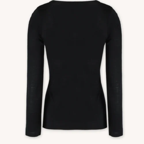 Klasyczna czerń sprawia, że koszulka wygląda jest uniwersalna i pasuje do wielu ubrań. Smukły krój i dekolt w serek sprawiają, że świetnie układa się pod swetrami, koszulami czy marynarkami. Długi rękaw zapewnia dodatkową warstwę ochrony, nie rezygnując z wygody ani estetyki. To uniwersalna opcja na co dzień – do pracy, na spacer czy jako niewidoczna warstwa grzewcza pod ubraniem.