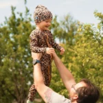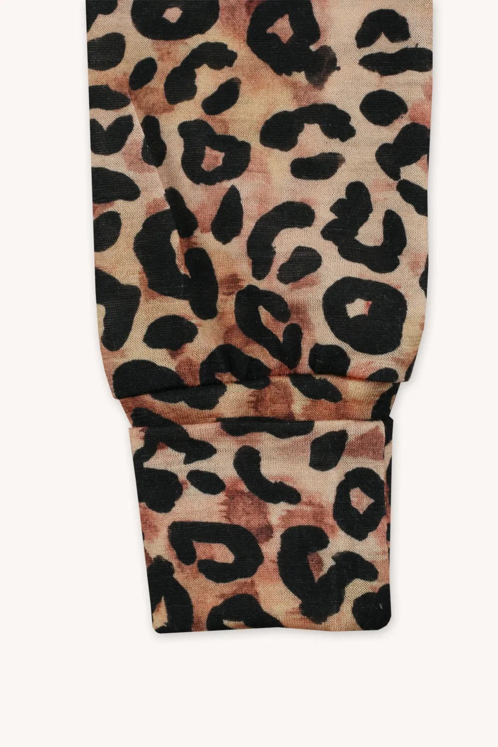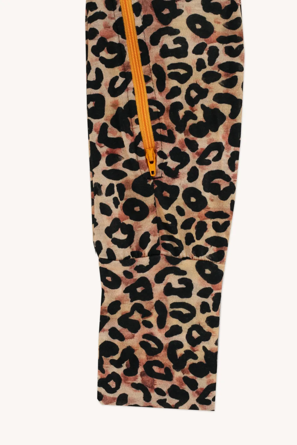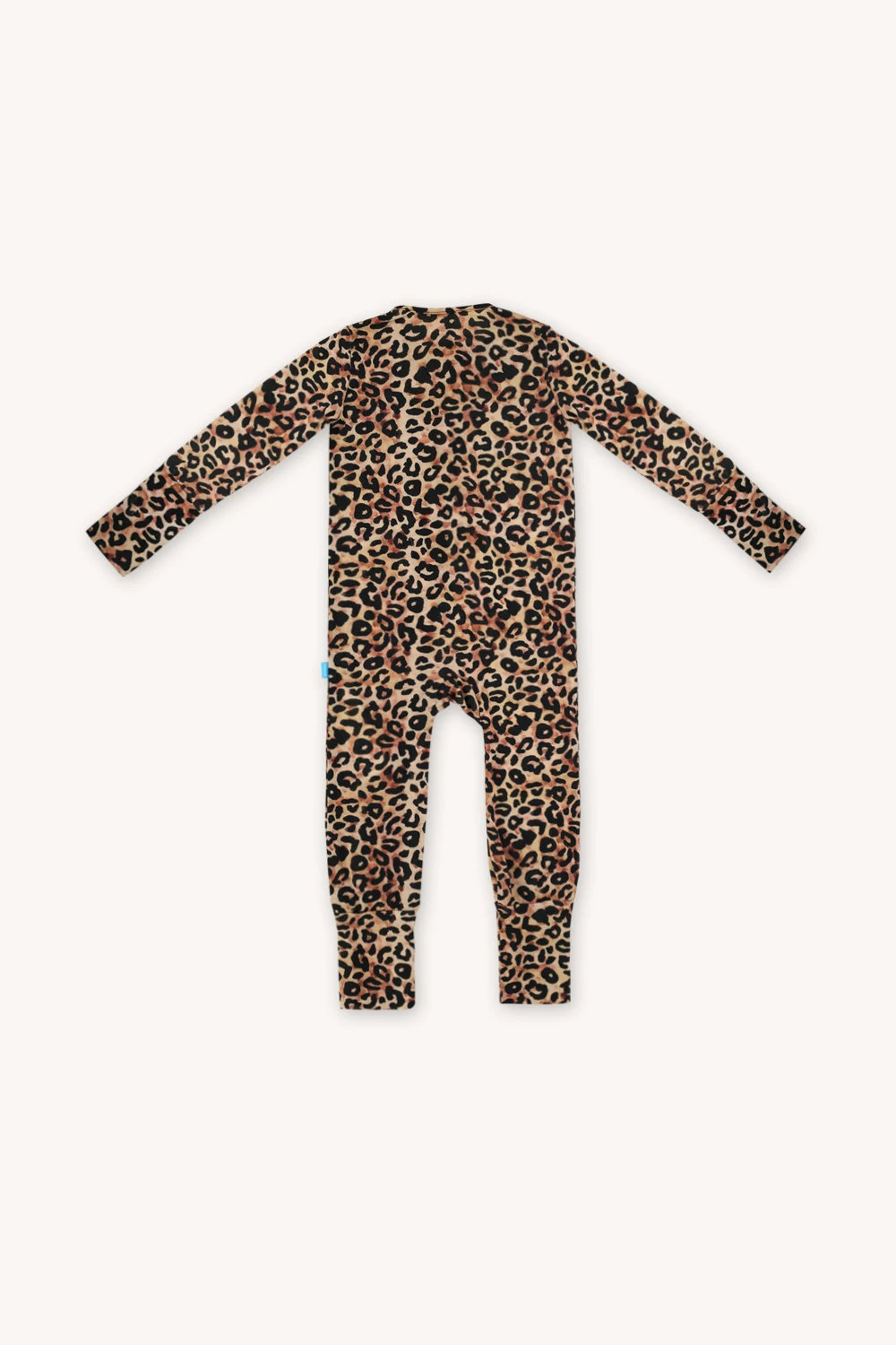 Cienki rampers dziecięcy z wełny merino w panterkę. Zapinanie na ukośny suwak sprawia, że szybko i łatwo go założysz i zdejmiesz. Ma wywijane mankiety na nogawkach i rękawach, dzięki czemu starczy na dłużej i będzie rósł razem z dzieckiem! Jest dopasowany i elastyczny. Idealny pod kombinezon i do noszenia solo.