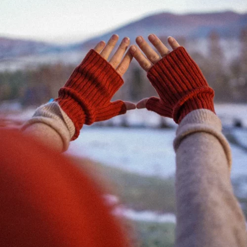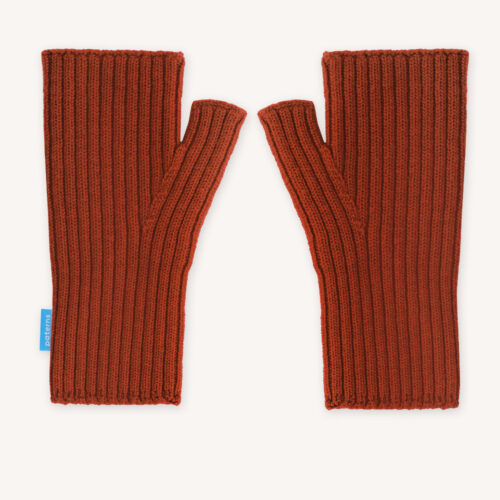 Rękawiczki mitenki bez palców w kolorze ceglanym z wełny merino – idealne na co dzień i do aktywności na świeżym powietrzu