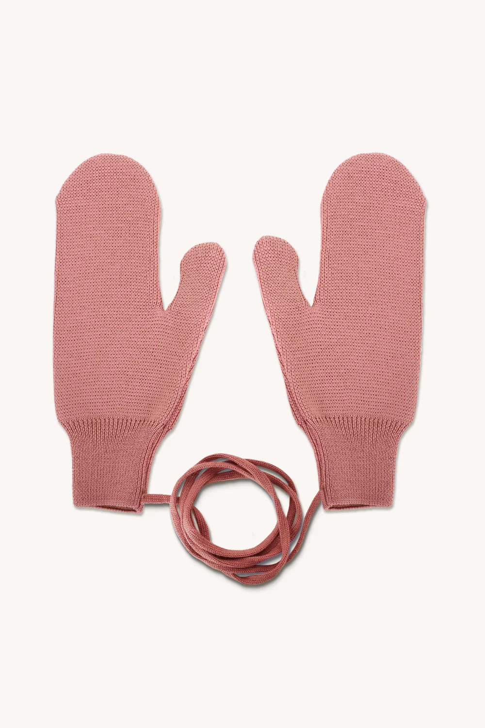Ciepłe, rękawiczki z wełny merino z jednym palcem na sznurku w kolorze zgaszonego różu. Jeśli jesteś typem, który co roku gubi rękawiczki, te będą dla Ciebie wybawieniem!