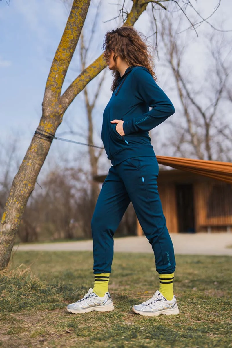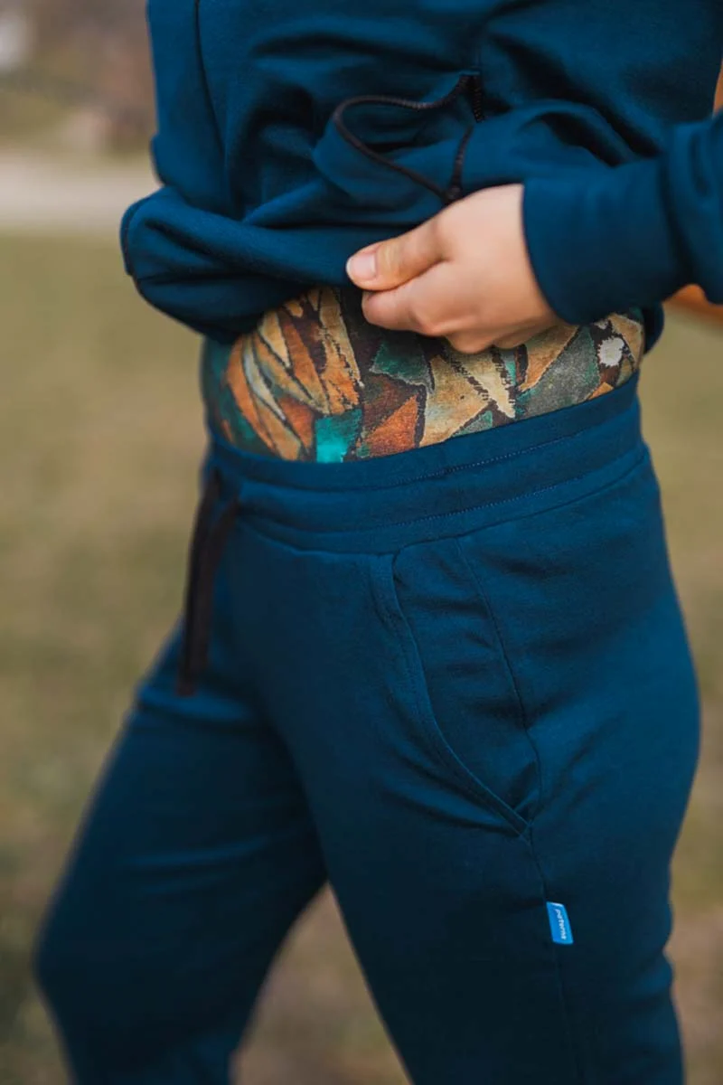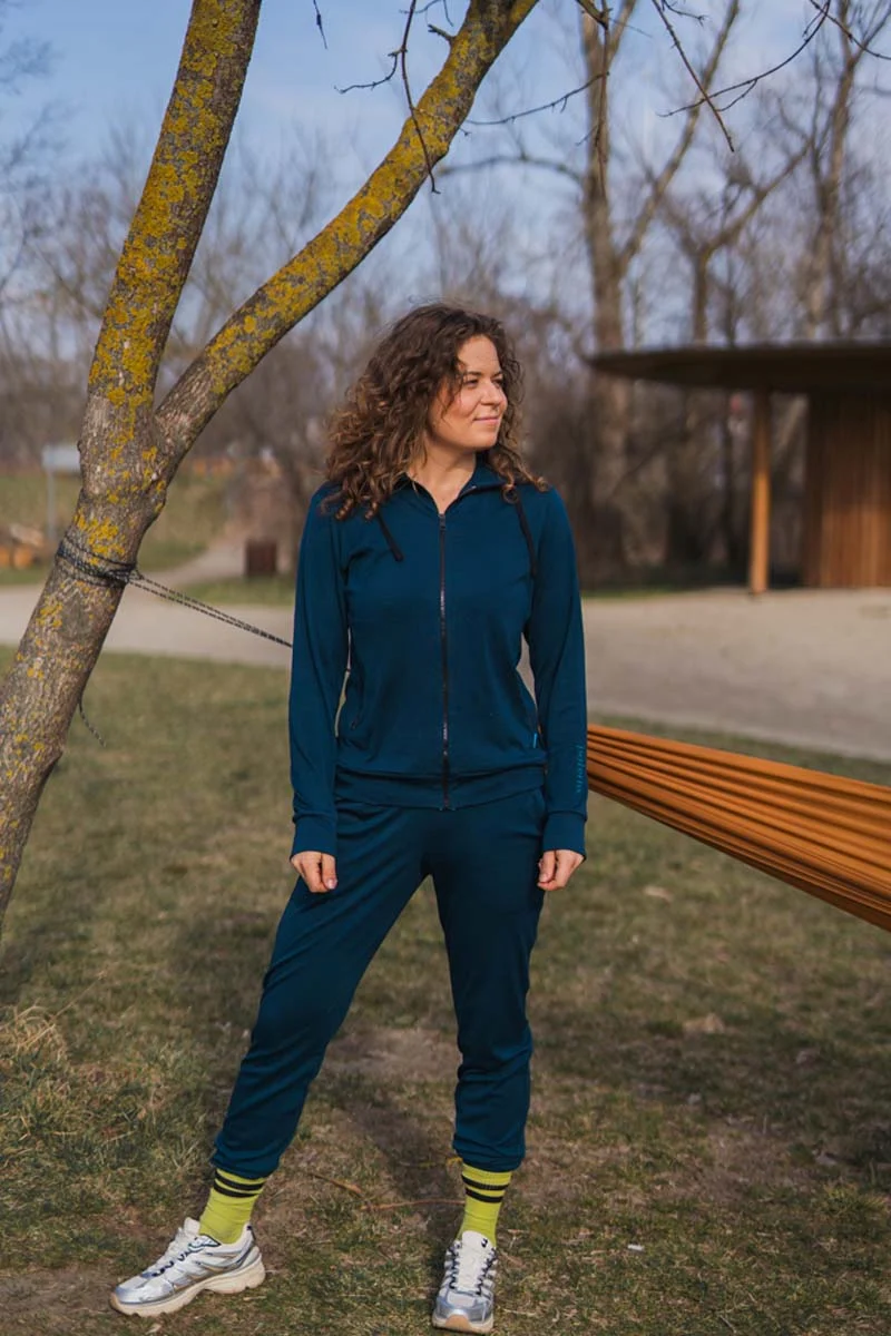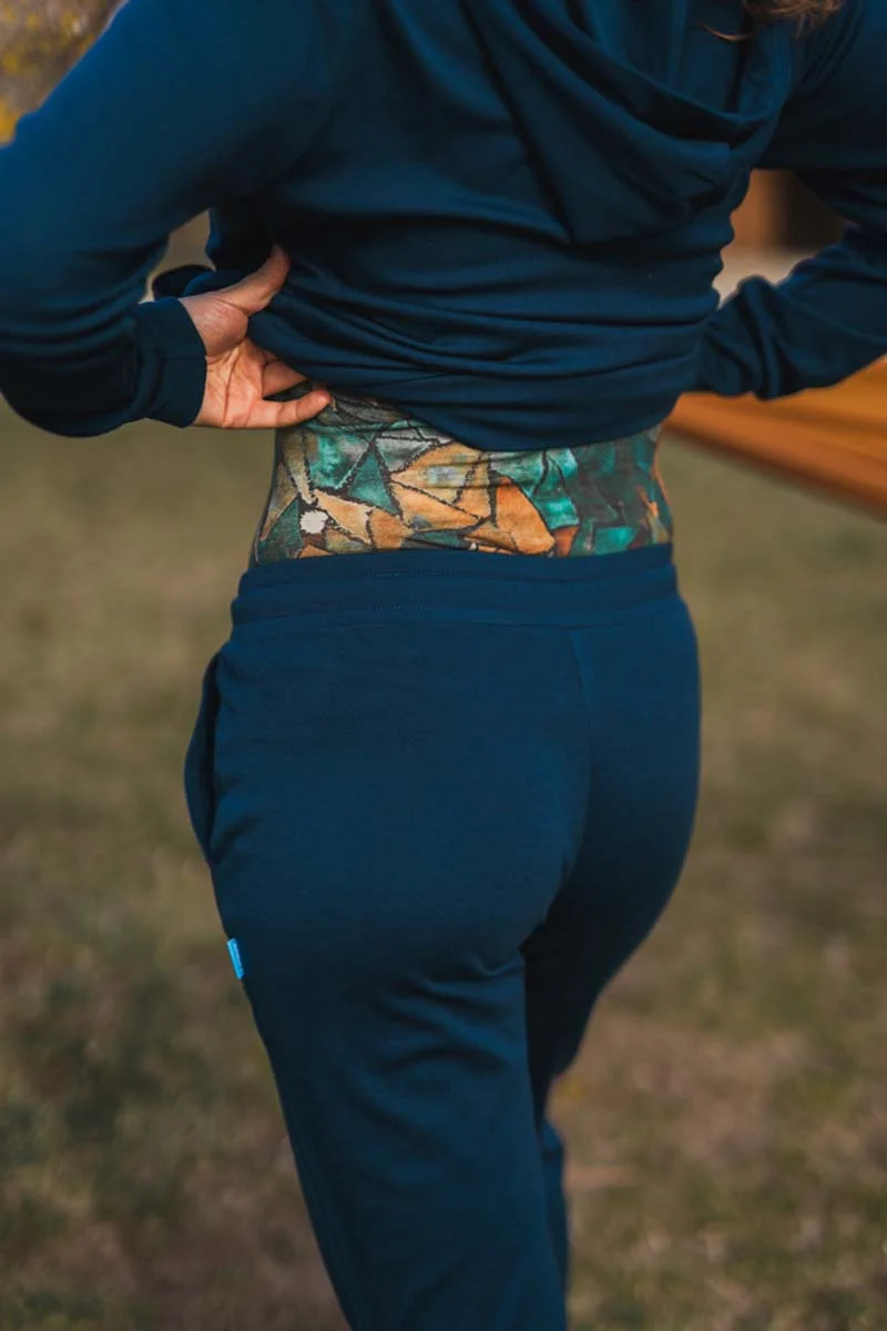 Dresowe spodnie w kolorze petrol wykonane w 100% z wełny merino, absolutnie idealne. Powstały w komplecie z bluzą z wełny merynosów.