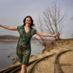 KRÓJ – Sukienka z wełny merynosów ma dekolt V, który możesz nosić z przodu albo na plecach. W wersji z dekoltem z przodu możesz w niej wygodnie karmić piersią. Jest luźna, nie krępuje ruchów. Lekka jak mgiełka, w ogóle nie czujesz, że masz ją na sobie.