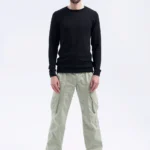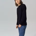 Prosty, męski sweter z wełny merino w czarnym kolorze.