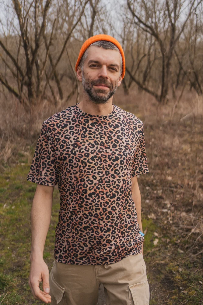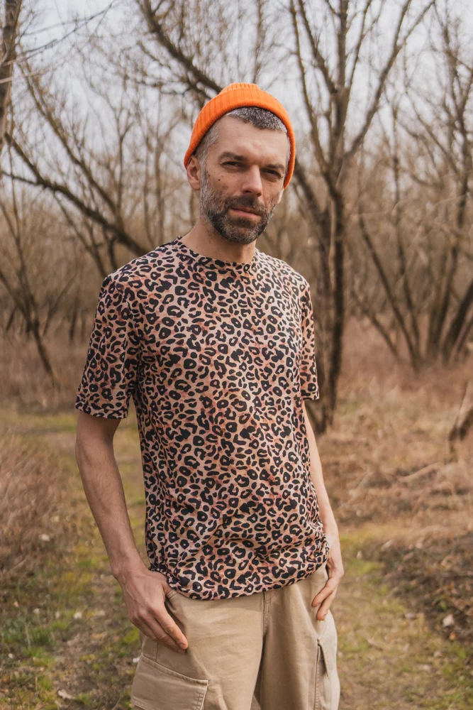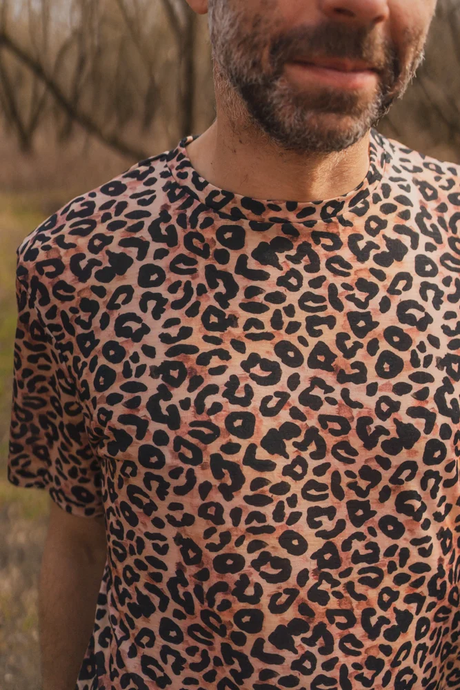 T-shirt z wełny merino męski w panterkę. To taka koszulka, w której nie przejdziesz niezauważony.