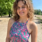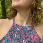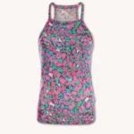 KRÓJ – Przód tanktopu, na wysokości biustu, uszyty został z dwóch warstw materiału. Sprawia to, że można swobodnie nosić go bez stanika, zupełnie nie prześwituje. Jest dopasowany. Plecy są idealnie wykrojone, pięknie podkreślają łopatki i ramiona. Z przodu top jest zabudowany. Dekolt i tył wykończone są estetyczną plisą.