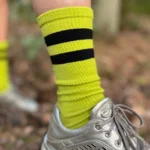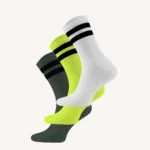Trzypak: skarpety trekkingowe merino z paskami białe, oliwkowe i neonowe. UWAGA: dla każdej pary skarpetek należy wybrać osobny rozmiar.