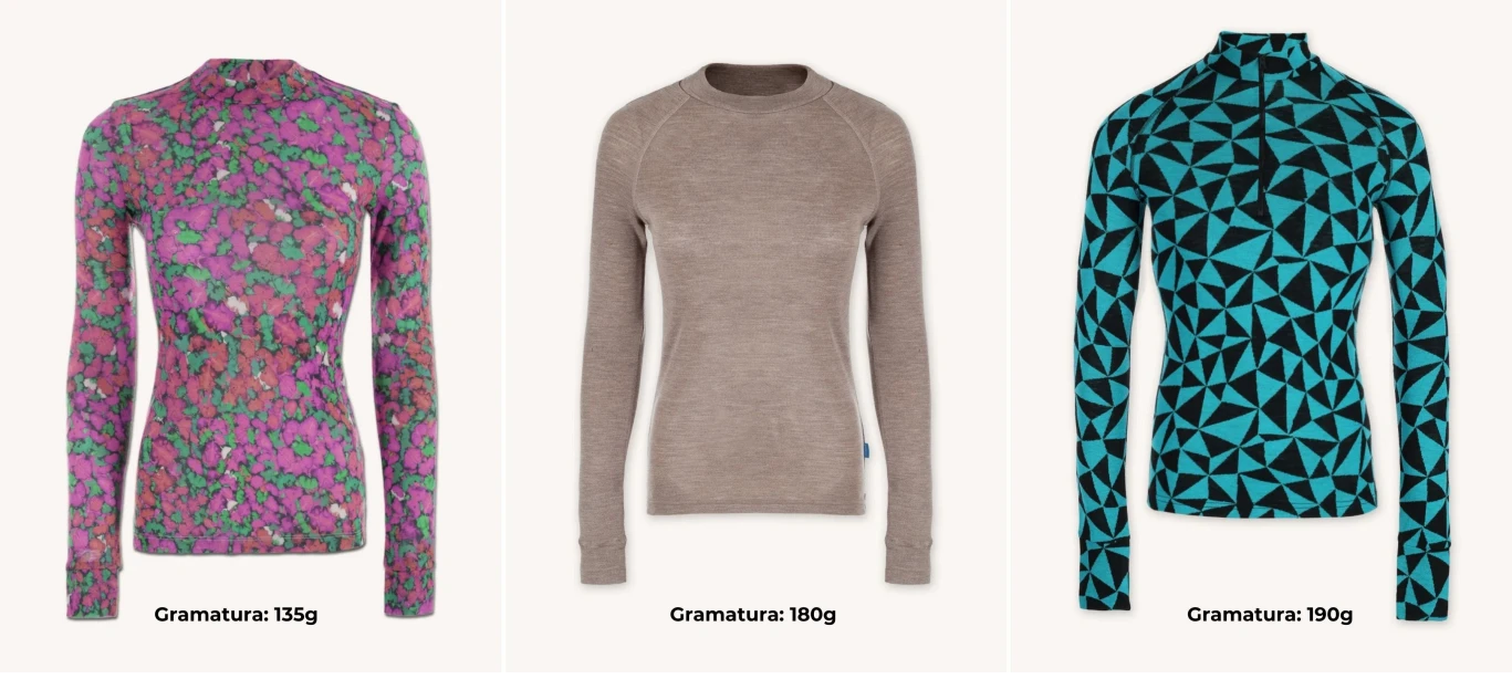 Przykładowo, wełna merino o niskim mikronażu (np. 17,5 mikrona) może być użyta zarówno do lekkiej odzieży letniej o niskiej gramaturze, jak i do ciepłych ubrań zimowych o wysokiej gramaturze. Oznacza to, że produkt może być jednocześnie miękki i komfortowy (niski mikronaż), a także dostosowany do różnych warunków pogodowych (dzięki odpowiedniej gramaturze). Warto zwrócić uwagę na obie te cechy podczas wyboru odzieży, aby dopasować ją do swoich potrzeb.