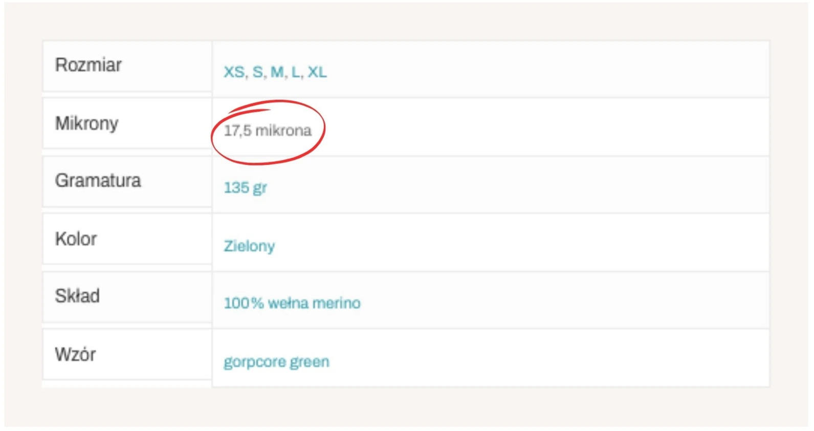 Wełna o średnicy włókien poniżej 25 mikronów jest uważana za niegryzącą i przyjemną w kontakcie ze skórą. Dla porównania, tradycyjna wełna owcza ma dużo grubsze włókna, nawet ponad 40 mikronów, co może powodować uczucie drapania.